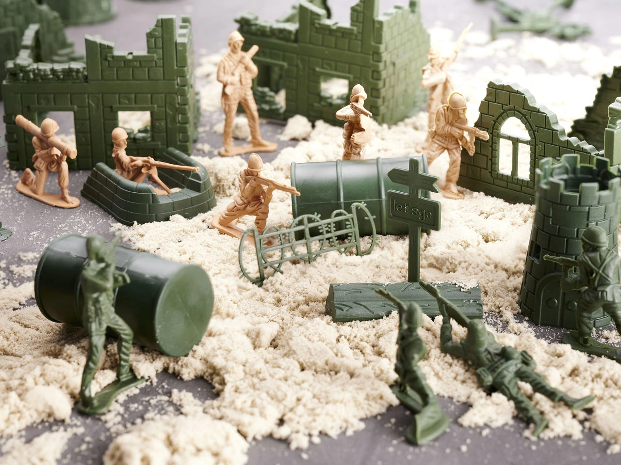 Създайте детайлна бойна сцена с пластмасови войничета в два цвята и множество принадлежности. Децата могат да планират стратегии, да строят отбранителни линии и да развиват логическото мислене и ориентацията в пространството. Комплектът е чудесен за самостоятелна игра и за игра в екип с братя и сестри или приятели.