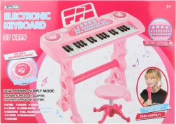 Розово пиано за деца с адаптер предлага широка гама музикални възможности. Позволява свирене на класически тонове, различни мелодични подложки, избор от различни музикални инструменти и дори звуци на животни. Перфектно за развитие на детските музикални умения.
