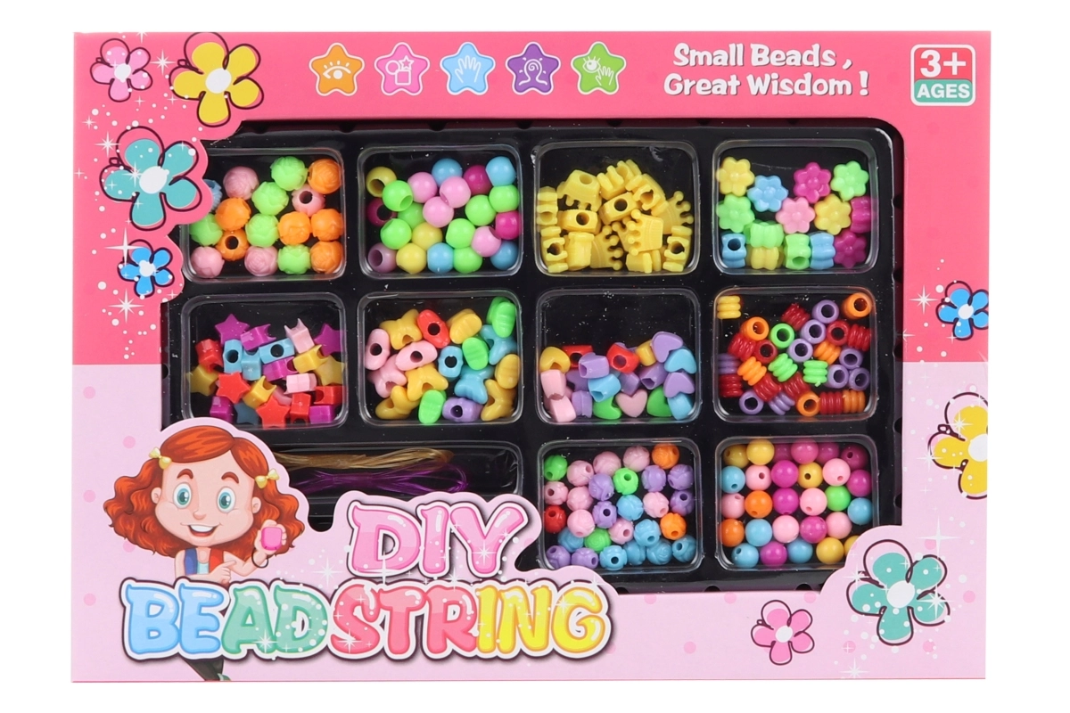 В комплекта са включени и шнурчета за нанизване, така че можете да започнете да творите веднага. Творенето с мъниста развива търпение, концентрация и значително подобрява фината моторика.