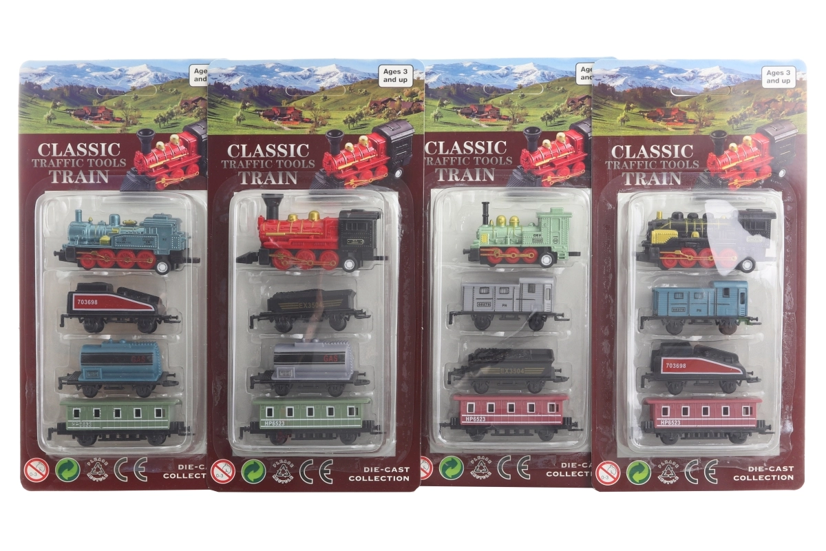 Този компактен комплект метални локомотивчета е отличен за първи опити в сглобяване на влакови композиции. Благодарение на здравия материал и лесната манипулация е подходящ за всекидневна игра у дома и по време на път. Размерите са удобни за детската ръка и подпомагат развитието на моториката, въображението и креативността.