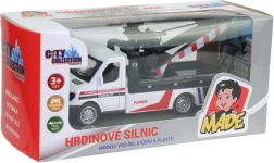 Оживете градските приключения с камиона пътна помощ City Collection с дължина 10,5 см. Благодарение на комбинацията от метални и пластмасови части изглежда реалистично и издържа на ентусиазирана игра. Pull-back механизмът осигурява бързо действие без батерии – просто издърпайте назад и потеглете на помощ.