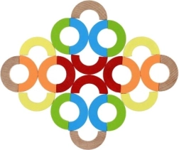 Тази универсална дървена мозайка предлага безкрайни възможности за игра – от строене на кули и мостове, през подреждане на симетрични шарки, до балансиращи задачи. Здравите, гладко шлифовани елементи в ярки цветове приканват към откриване и учат децата на съсредоточеност и координация око–ръка.