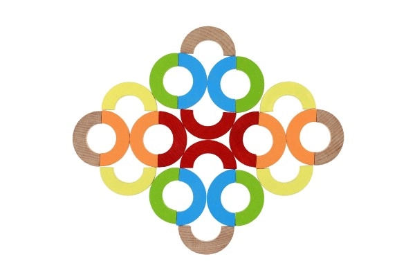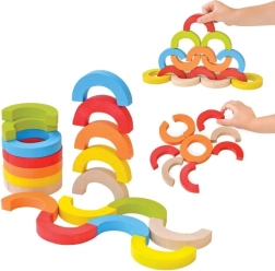 Дъговите арки и полукръгове могат да се подреждат в кули, мостове и балансиращи предизвикателства. Така децата развиват концентрация, стабилност и пространствено възприятие.