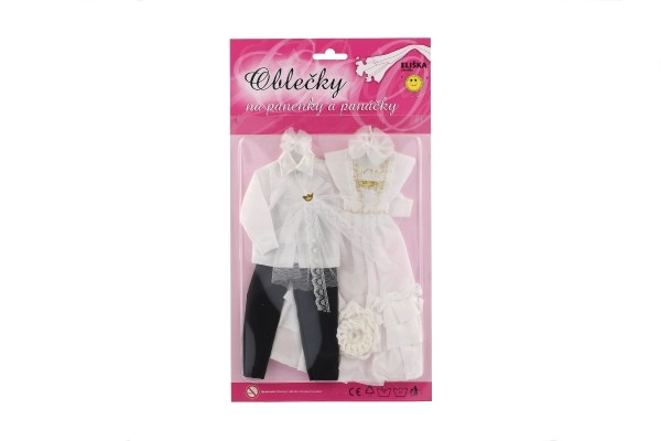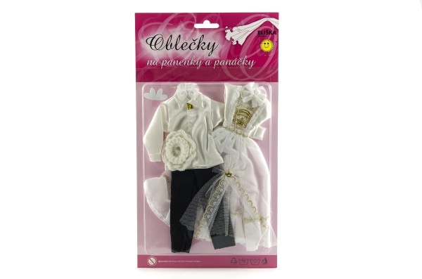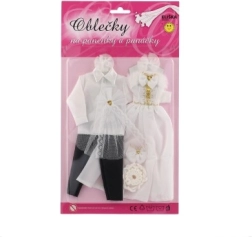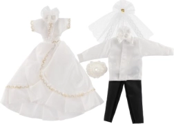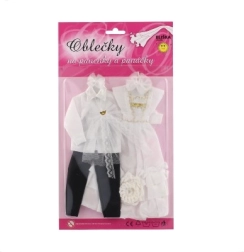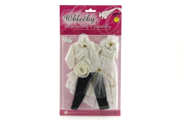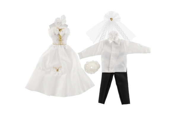 С този уникален комплект сватбени дрехи вашите кукли могат да станат звездите на всяка въображаема сватба! Тоалетите включват детайлно изработена рокля и елегантен костюм, които придават на сватбената ви история магия и блясък.