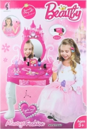 С едно просто натискане на бутон тоалетката светва и започва да свири мелодия, което придава автентичност на играта. Към комплекта е включено и удобно пластмасово столче. Всичко необходимо за игра на красота е осигурено!