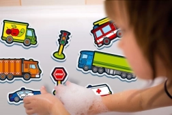 Потопете се в забавно пътешествие до банята с водолепки на коли! Достатъчно е да ги намокрите и веднага можете да ги закрепите върху ваната или плочките.