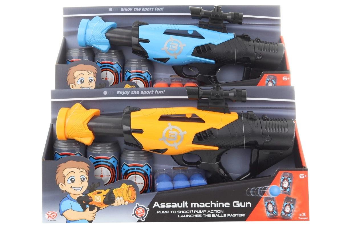 Този пластмасов пистолет за пяна топчета е идеален за деца, които обичат екшън игрите. В комплекта са включени три пластмасови кутийки с мишена и дванадесет топчета, които позволяват създаване и подреждане на различни предизвикателства. Пистолетът е проектиран да бъде лек и лесен за управление.