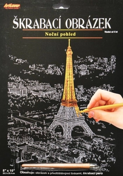 Комплектът е готов за незабавно творчество – съдържа картина с размери 20 × 25 cm и пластмасова стъргаща писалка с дължина 14 cm. За по-малки деца поради острия връх на писалката е препоръчителен надзор от възрастен.