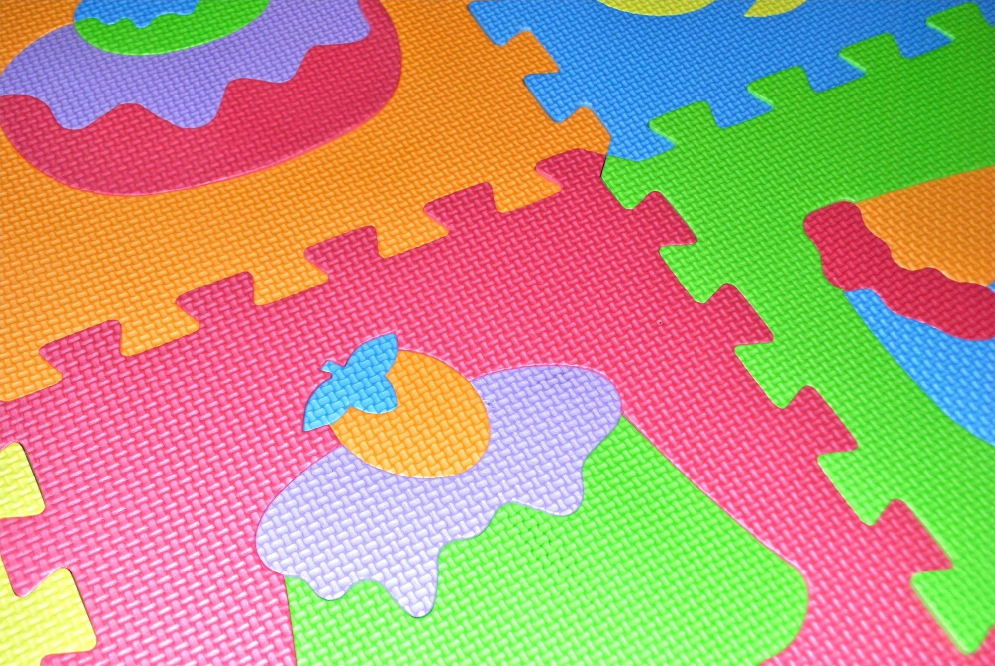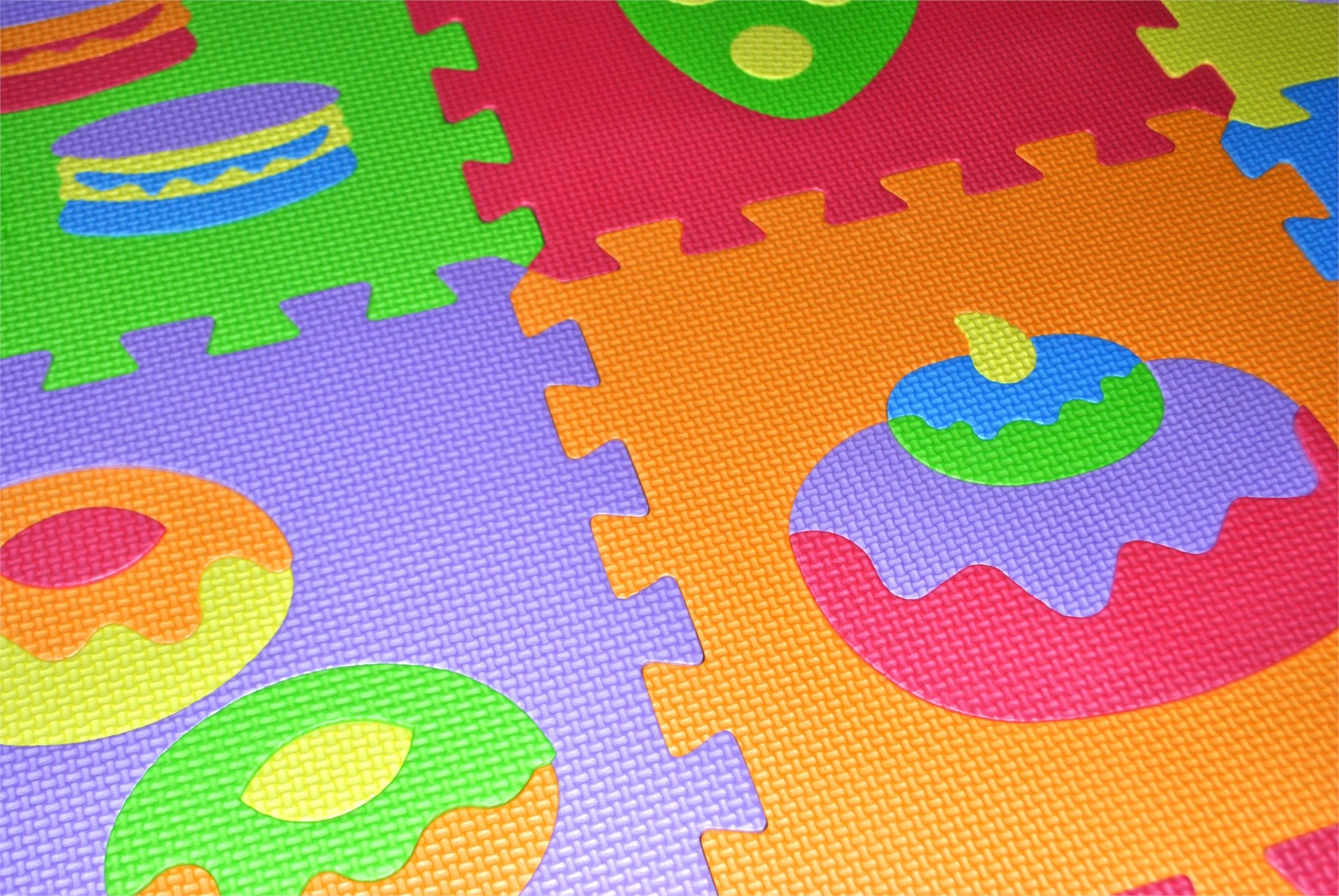 Този пеназелен пъзел с мотив на храни е идеален като игров килим за детската стая. Благодарение на меката материя е безопасен, приятен на допир и лесен за поддръжка. Релефната повърхност осигурява по-добра стабилност по време на игра и минимизира приплъзването.