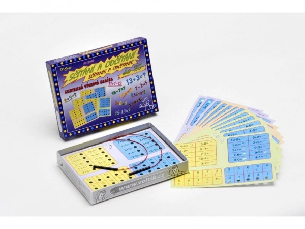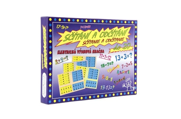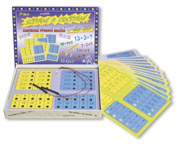 В кутията ще намерите богата серия примери за събиране и изваждане до 20. Електронният панел със светлинен индикатор осигурява незабавна обратна връзка без тетрадки и моливи. За работа са необходими 2× AA батерии (не са включени в комплекта).