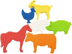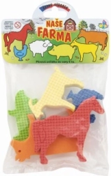 Открийте радостта от къпането с пянените стикери за вода Нашата ферма. Благодарение на меката и лека материя елементите се държат лесно в детските ръце, след намокряне полепват върху ваната или плочките, а след употреба се свалят лесно и се използват отново. Цветните фермерски мотиви подпомагат възприемането на цветовете, координацията око–ръка и креативната игра.