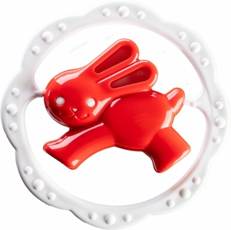 Открийте сладката дрънкалка с гризалка във форма на кръг, която впечатлява с игрив дизайн и текстуриран повърхностен релеф за приятно стимулиране на венците. Благодарение на удобния захват играчката се държи лесно и насърчава самостоятелното откривателство.