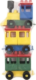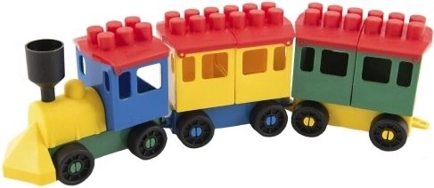 Конструктор LORI влак с 2 вагончета, пластмасов