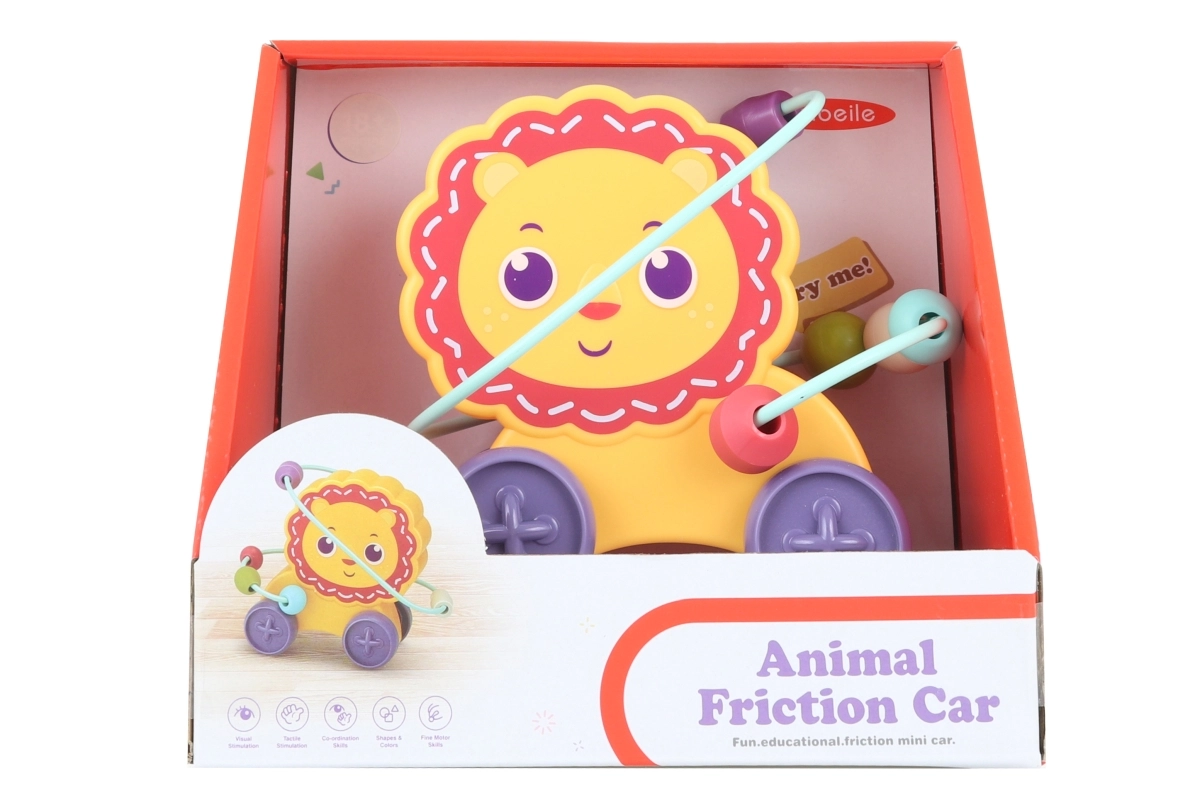 Забавен пластмасов лабиринт във форма на лъв на колелца, който подпомага фината моторика и логическото мислене на децата. Благодарение на компактните размери е идеален както за път, така и за дома. Развива координацията око–ръка, тренира търпението и по забавен начин учи на цветове и форми.