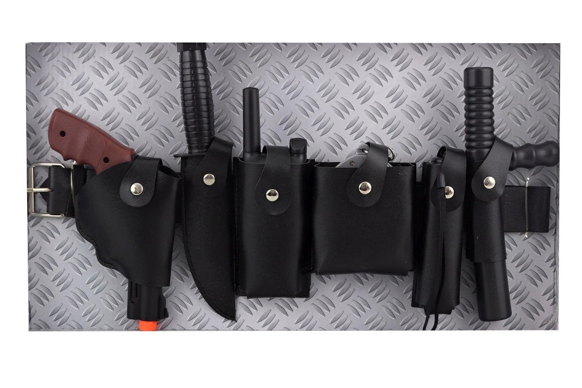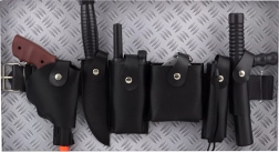 - Кожен колан (около 43 см), пистолет, нож, радиостанция, белезници, фенер с батерии, палка