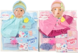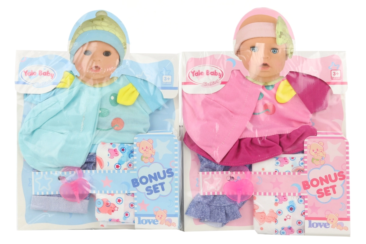 Този комплект дрехи за кукла с размер 40 см предлага всичко необходимо за забавна и грижовна игра. Освен дрешките, включени са и пелена и биберон, благодарение на което децата могат да имитират ежедневните грижи за бебе и да развиват социалните си умения.