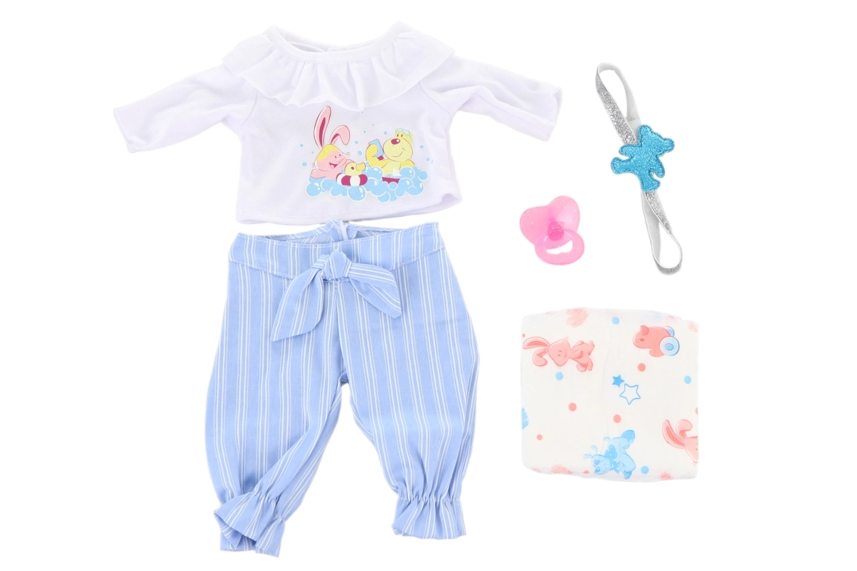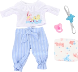 Подарете на куклата си нов тоалет и на децата безкрайни възможности за игра. Комплектът е проектиран за кукли с височина приблизително 45 см и пасва на повечето стандартни кукли в този размер. Благодарение на обмислената кройка обличането е лесно дори за по-малки деца.