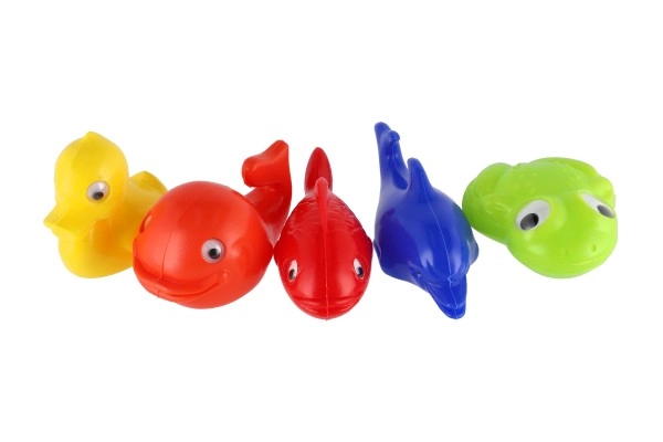 Този цветен комплект пластмасови играчки носи радост и забавление по време на къпане. Съдържа рибки, делфин, жаба и патенце, които насърчават детското въображение и развиват фината моторика.