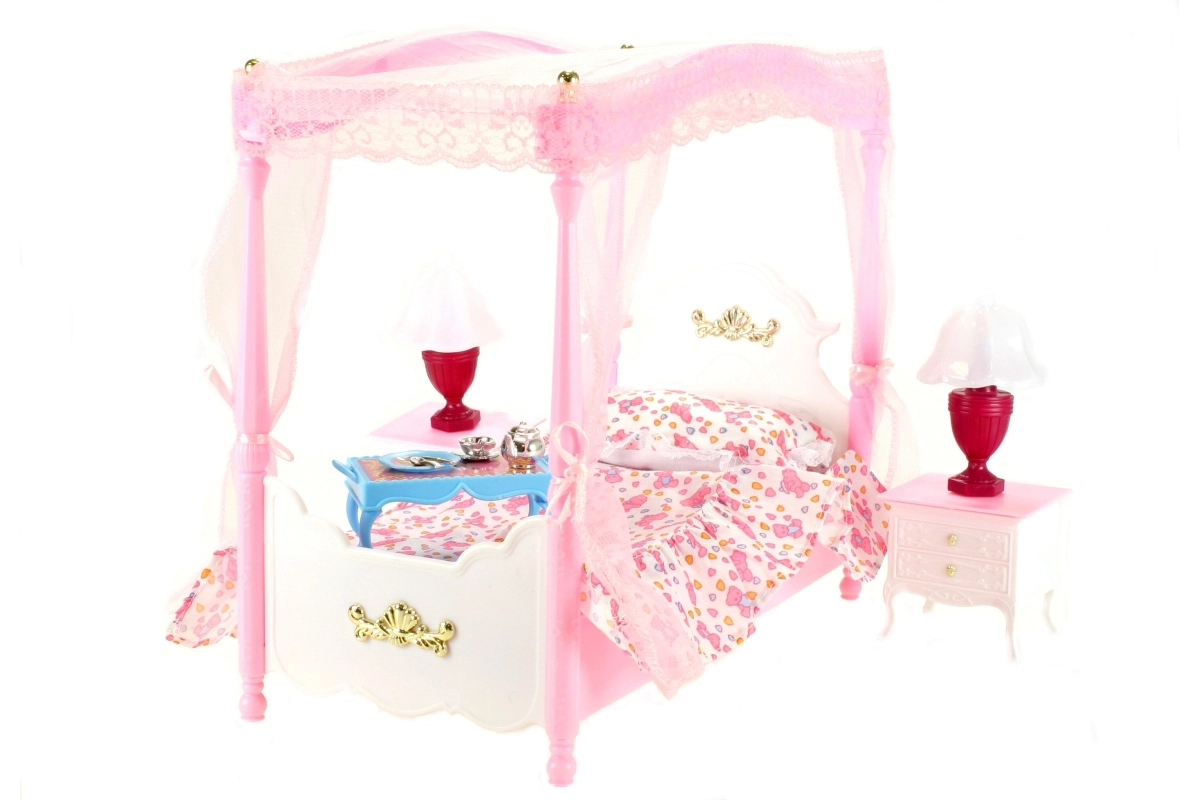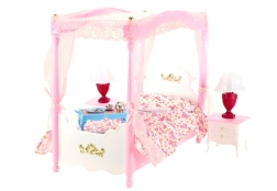 Това детайлно изработено легло с балдахин превръща стаята на куклите в уютно кралство. Благодарение на богатите аксесоари и функционалните лампички децата ще се насладят на множество реалистични сценарии и забавление. Качествената пластмасова изработка осигурява издръжливост и лесна поддръжка.