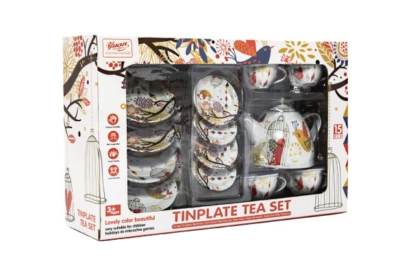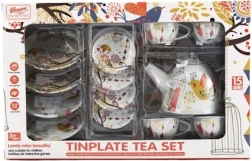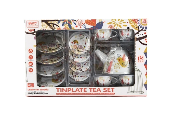 Стилен калаен чаен комплект ще зарадва всяка малка домакиня. Позволява организиране на забавни чаени партита, подпомага ролева игра и развитието на фантазията. Комплектът съдържа 15 части и е идеален за деца от 3 години.