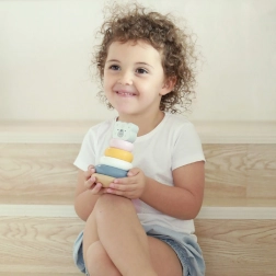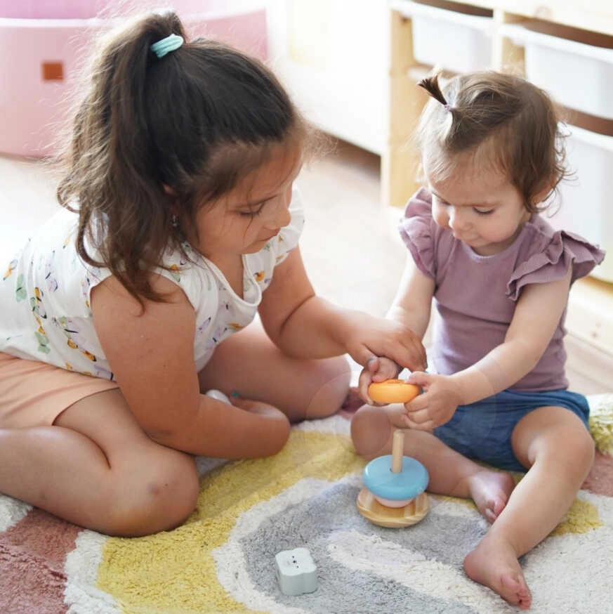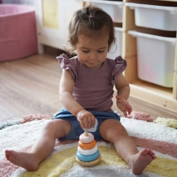 Играта с пирамидата помага за развитие на координацията око-ръка, логическото мислене и креативността на децата.