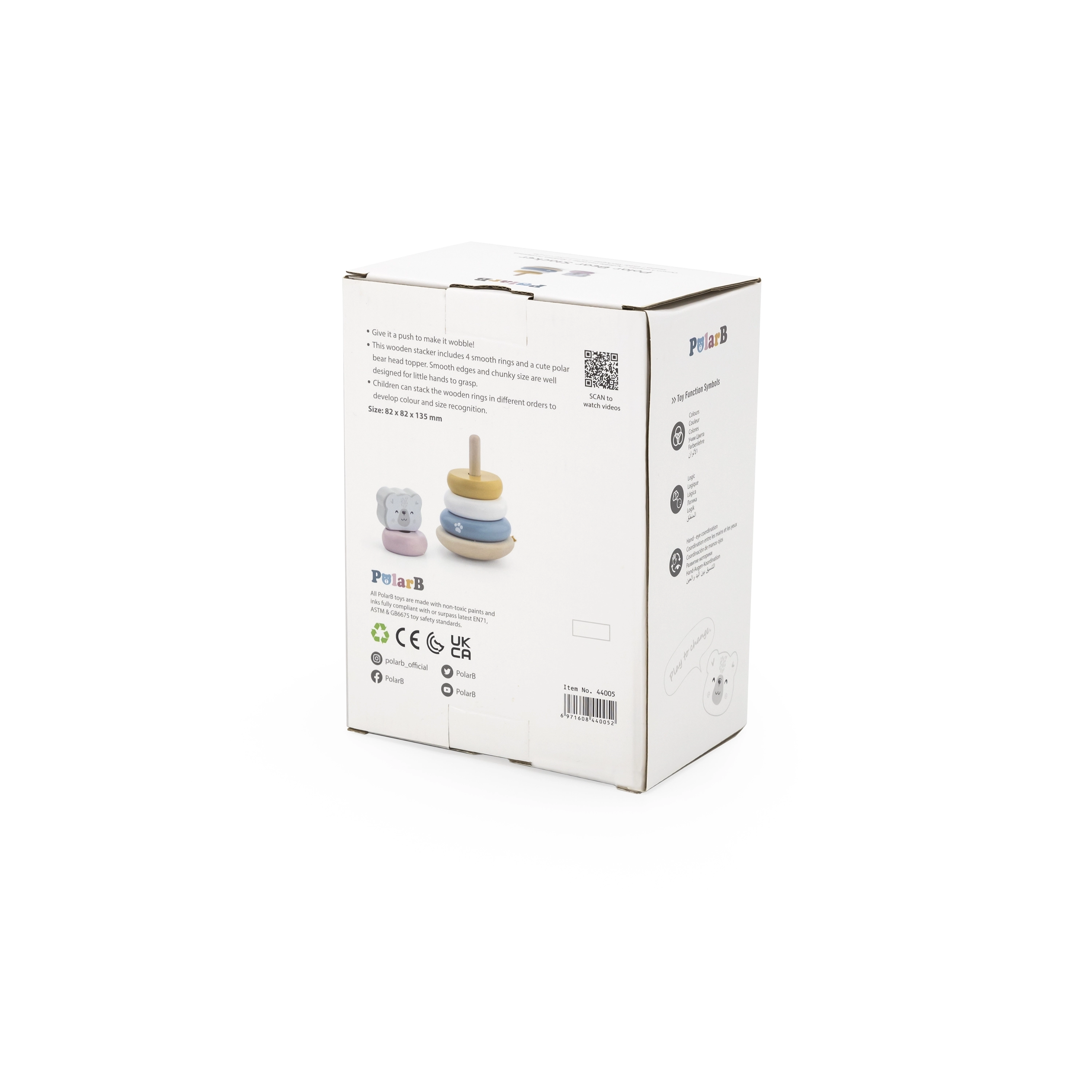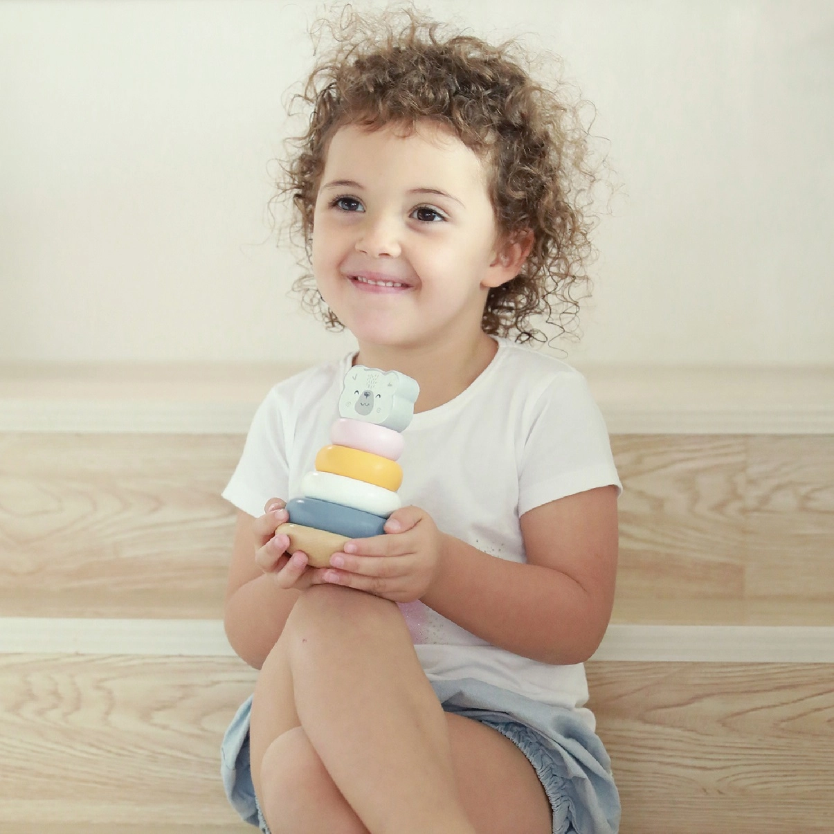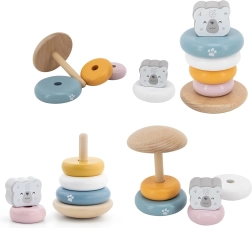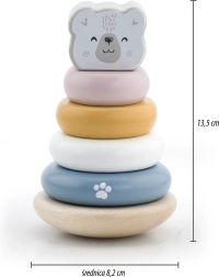 Дървената образователна пирамида с мотив Полярна мечка е идеална играчка за най-малките. Тази пирамида е оборудвана с шест ринга с различни размери и цветове, включително един основен ринг с глава на мечка. Благодарение на издръжливата дървена конструкция играчката е не само безопасна, но и устойчива.