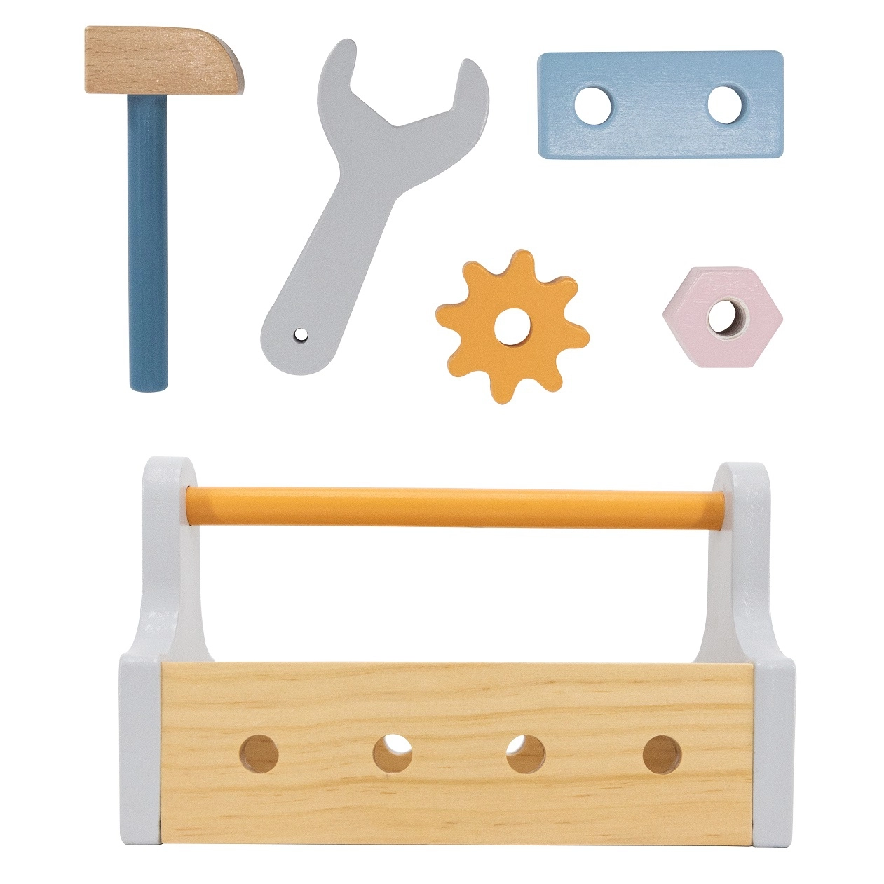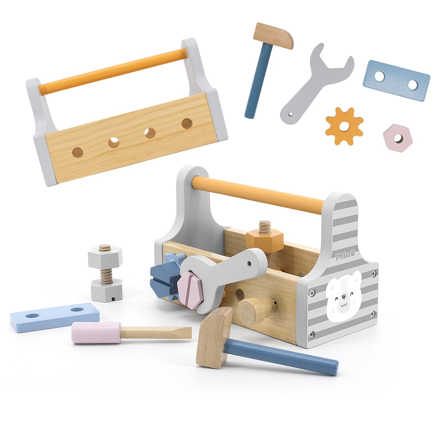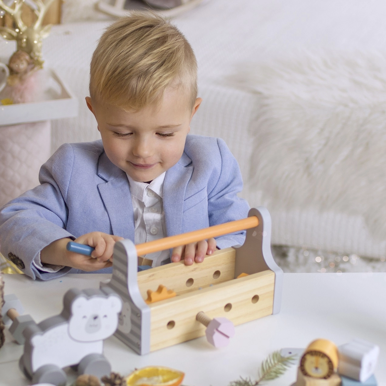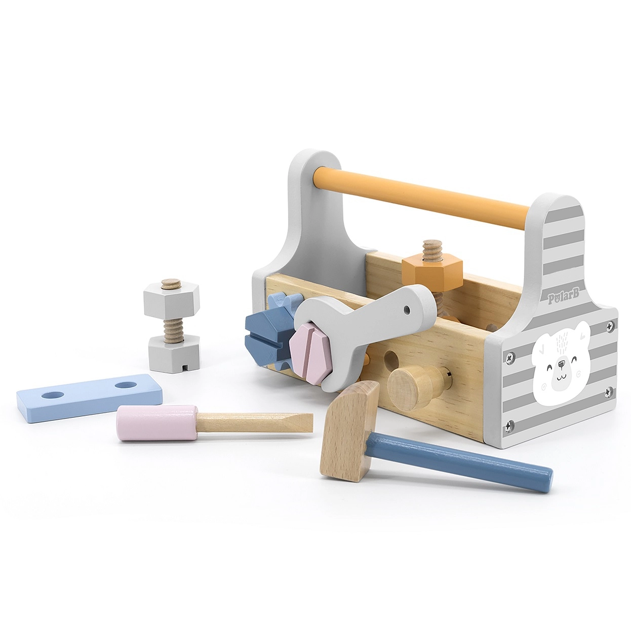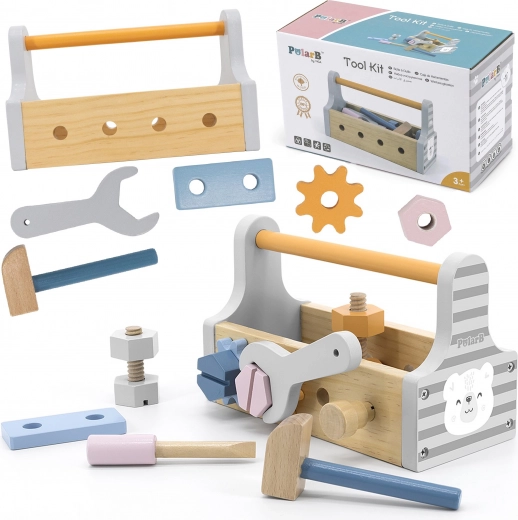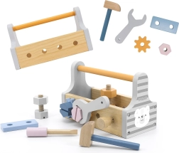 Дървената кутия с инструменти от VIGA, серия Polar Bear, носи на децата радост от креативността и усвояването на практически умения. Този комплект съдържа всичко необходимо за часове въображаема игра и забавление, развиващо фината моторика.