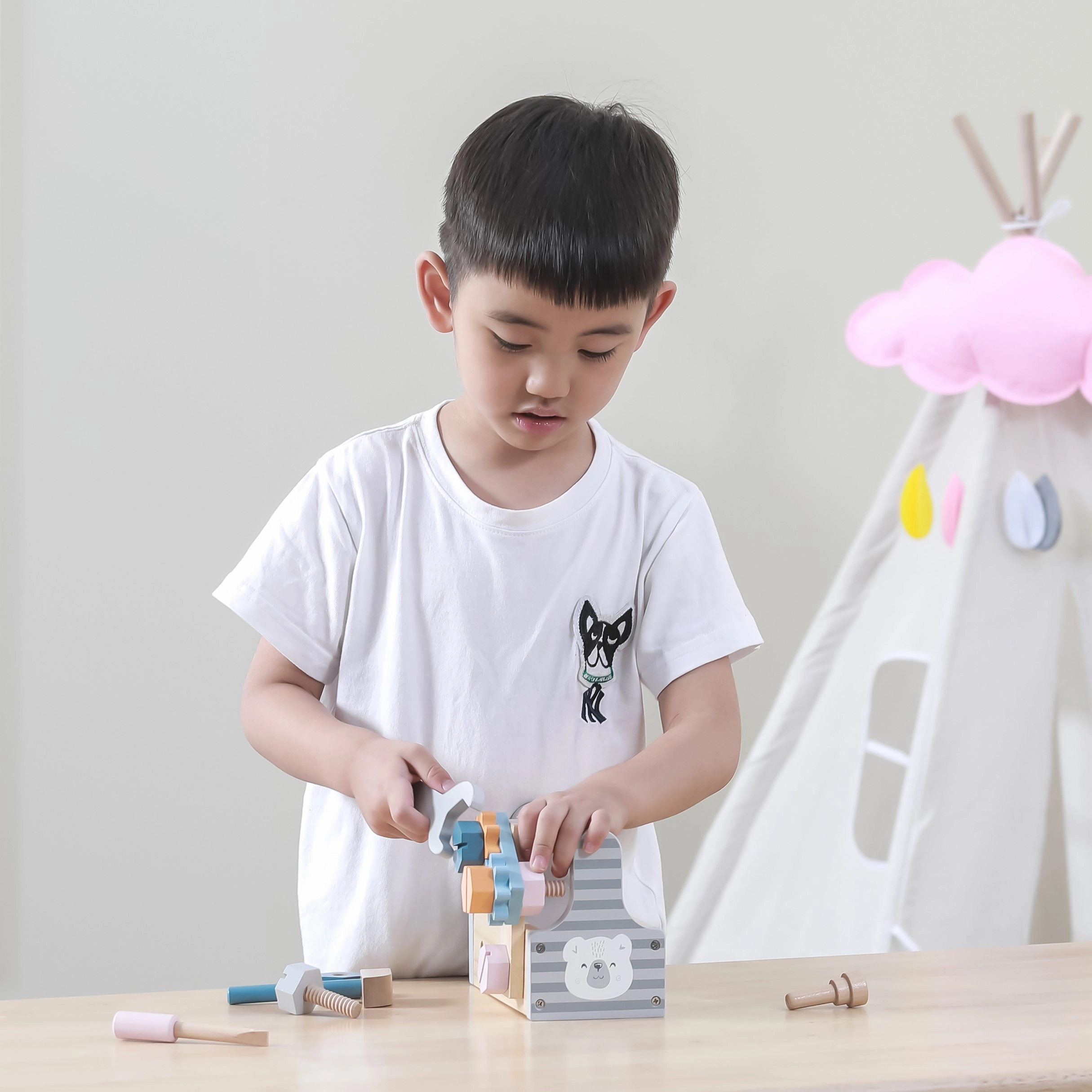Кутията с инструменти насърчава детското въображение и ги запознава с основите на механиката.