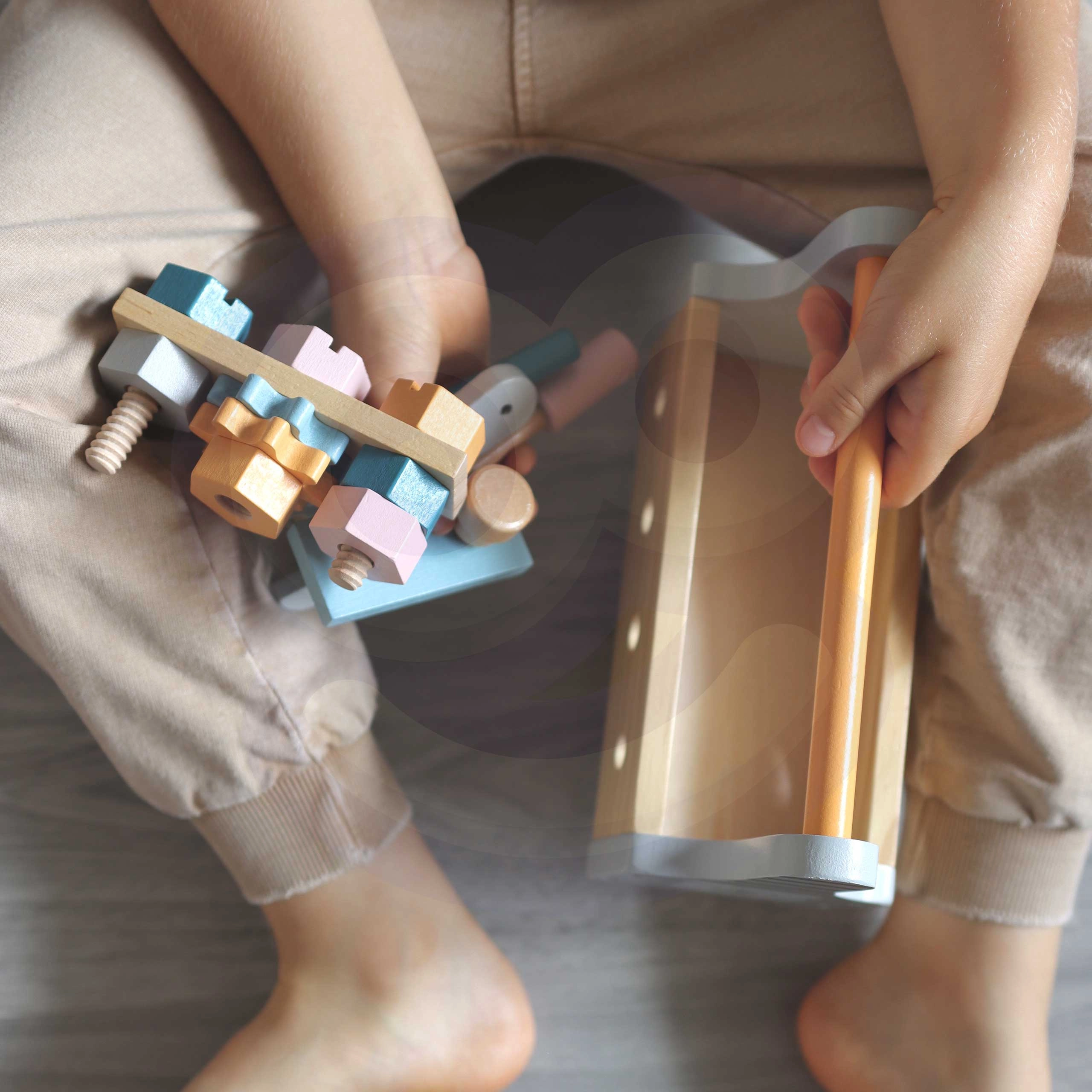 Помага на децата да подобряват фината моторика и координацията ръка-око, докато играят с винтове и гайки.