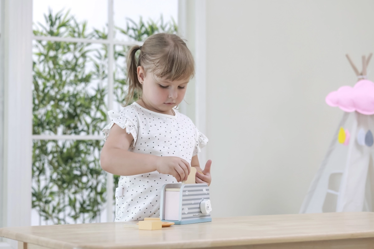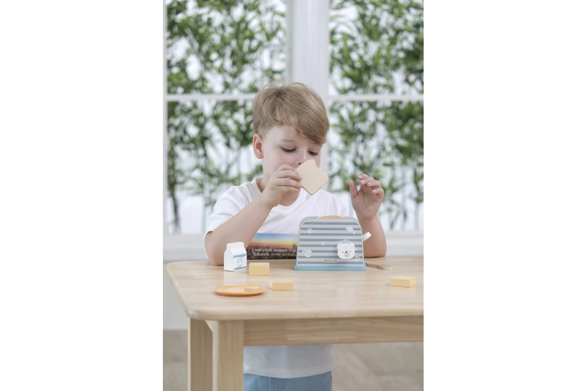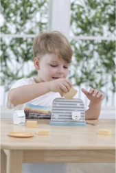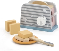 Дървеният тостер е проектиран да осигури на децата безопасен и забавен начин за игра на кухня. С изчистен дизайн и издръжлива конструкция е идеален за въображаеми игри и развитие на моторните умения.
