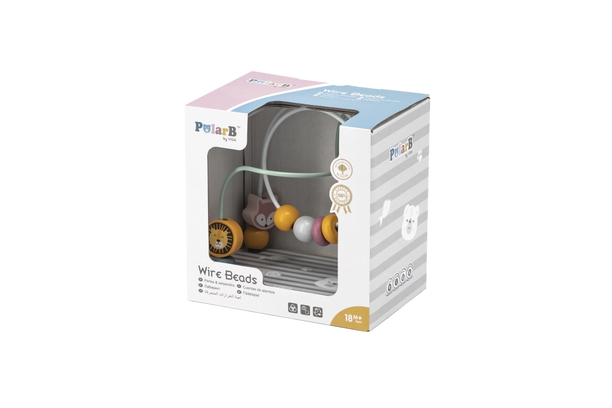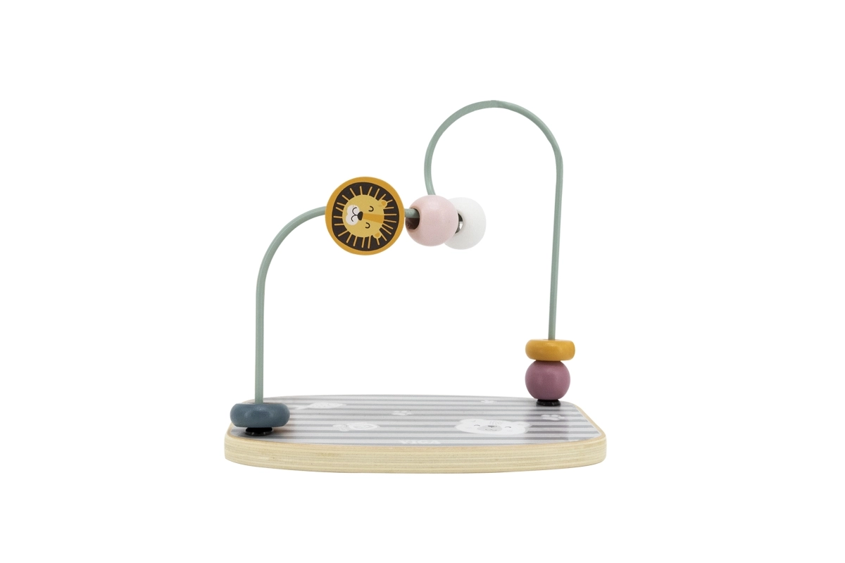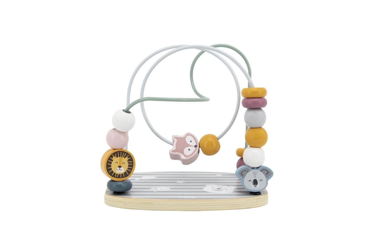 Открийте дървения мъниста-лабиринт, който мотивира развитието на фината моторика и предоставя образователно изживяване за малките деца. Тази качествена играчка е изработена от естествено дърво и използва безопасни бои, което гарантира безопасност и естетичен вид. С цветните мъниста и животински форми, нанизани по извити метални контури, децата укрепват своята координация и фина моторика.