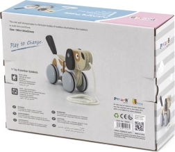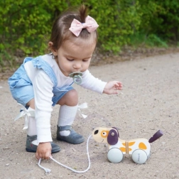 Дървеното кученце на връв от колекцията VIGA POLARB съпровожда децата по време на първите им разходки и превръща всяка стъпка в забавление. Благодарение на гумените обвивки на колелцата движението е тихо и плавно, а когато детето дръпне, опашката весело помахва.