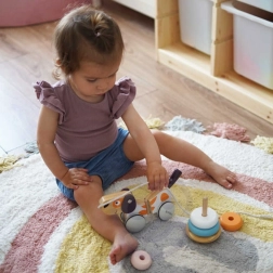 Играчката развива координация, креативност и въображение и прекрасно допълва колекцията от дървени играчки в приглушени цветове. Подходяща за ежедневна игра у дома и по време на път.