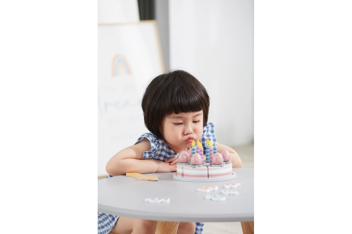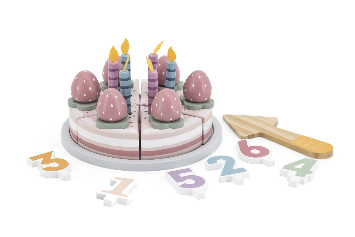 Поднесете на децата радостта от празника всеки ден. Дървената рожденоденска торта POLARB може да се реже на 6 порции, да се украсява със свещички и ягодки и да се сервира с включената шпатула. Цветните цифри насърчават децата да разпознават числата и да броят просто, а реалистичната игра на празнуване развива социалните умения.