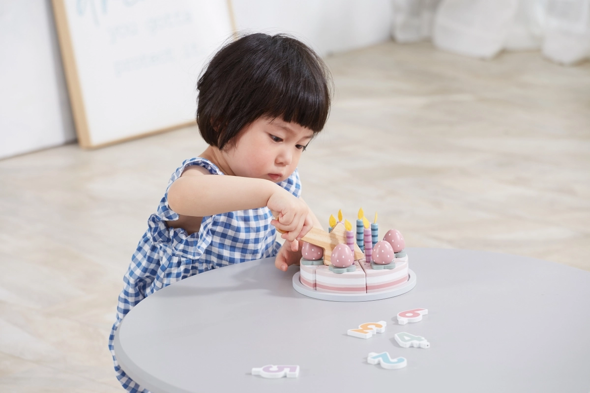Рязането, декорирането и поднасянето на тортата развиват фантазията, фината моторика и общуването по време на съвместна игра.