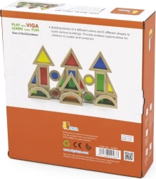 Комплектът от 24 дървени цветни блокчета Viga е предназначен за деца от 18 месеца. Този образователен и забавен продукт подпомага креативността и развитието на фината моторика при малките деца, като същевременно е безопасен за тях.