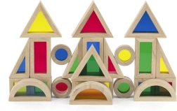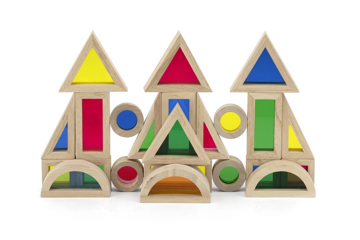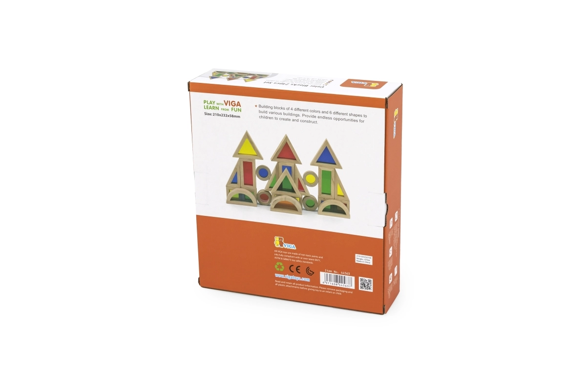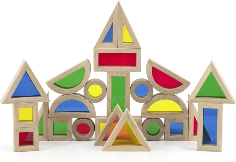 С този комплект дървени блокчета децата откриват света на цветовете и формите. Всяко блокче е проектирано да стимулира въображението и да учи децата на нови умения. С тази играчка те могат да строят различни конструкции и да упражняват основни математически умения.