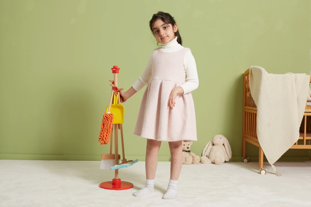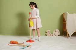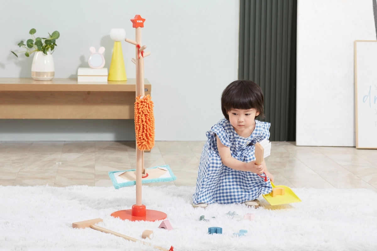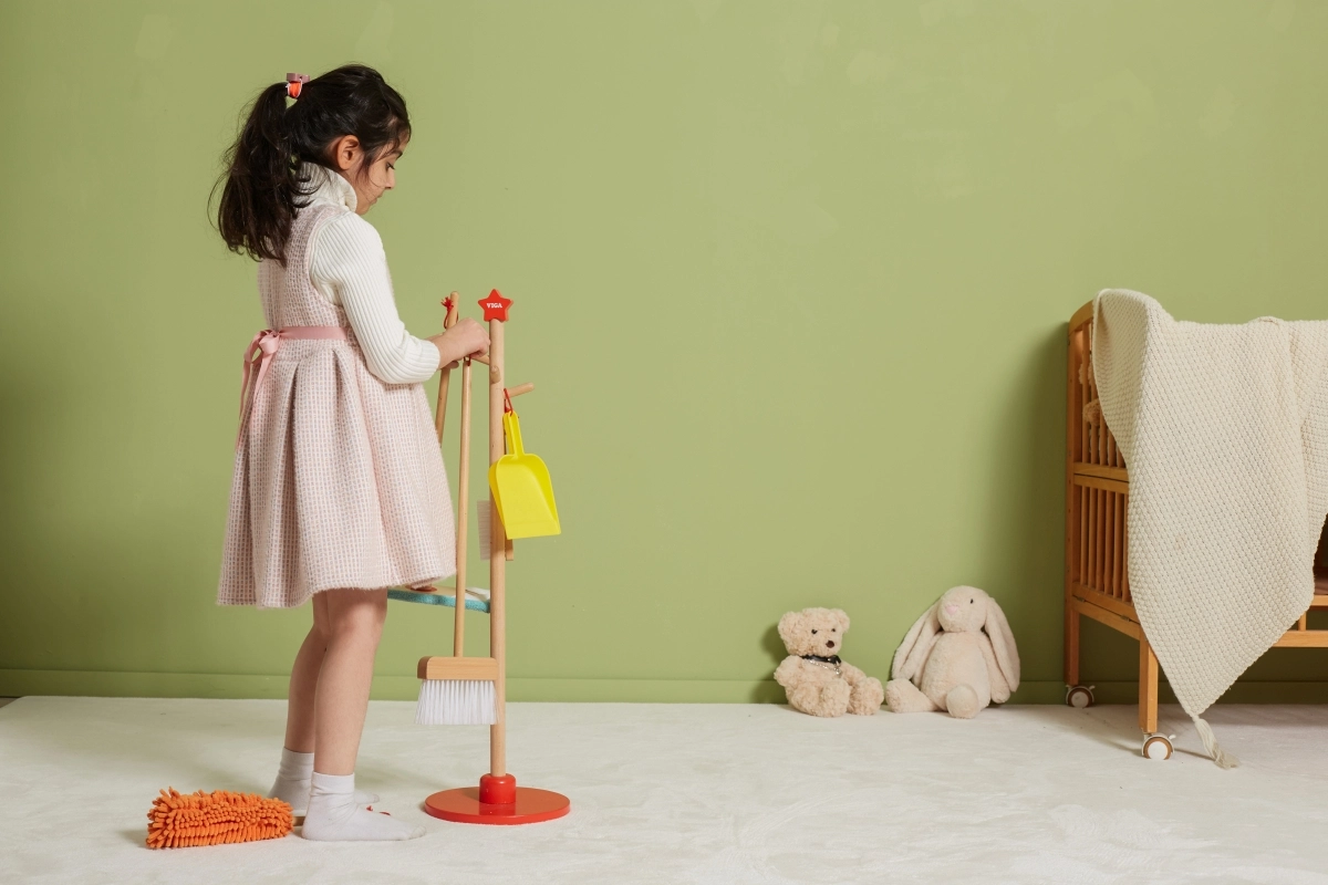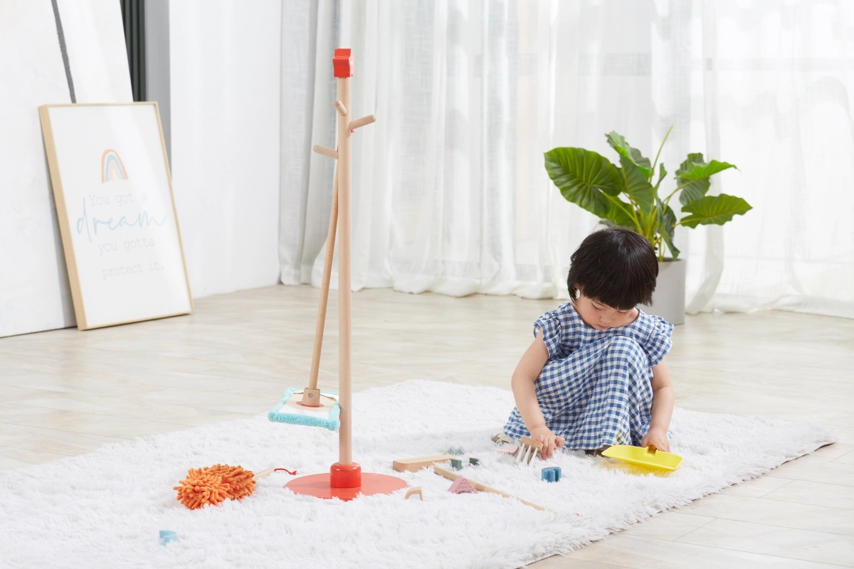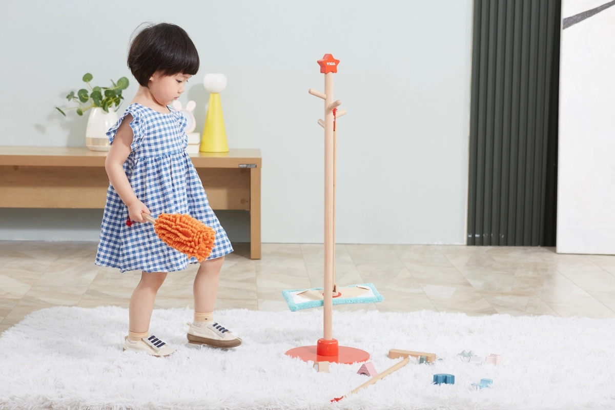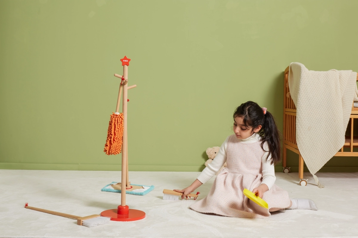 Благодарение на разнообразните инструменти за почистване децата усъвършенстват своята моторика и равновесие, докато играят.