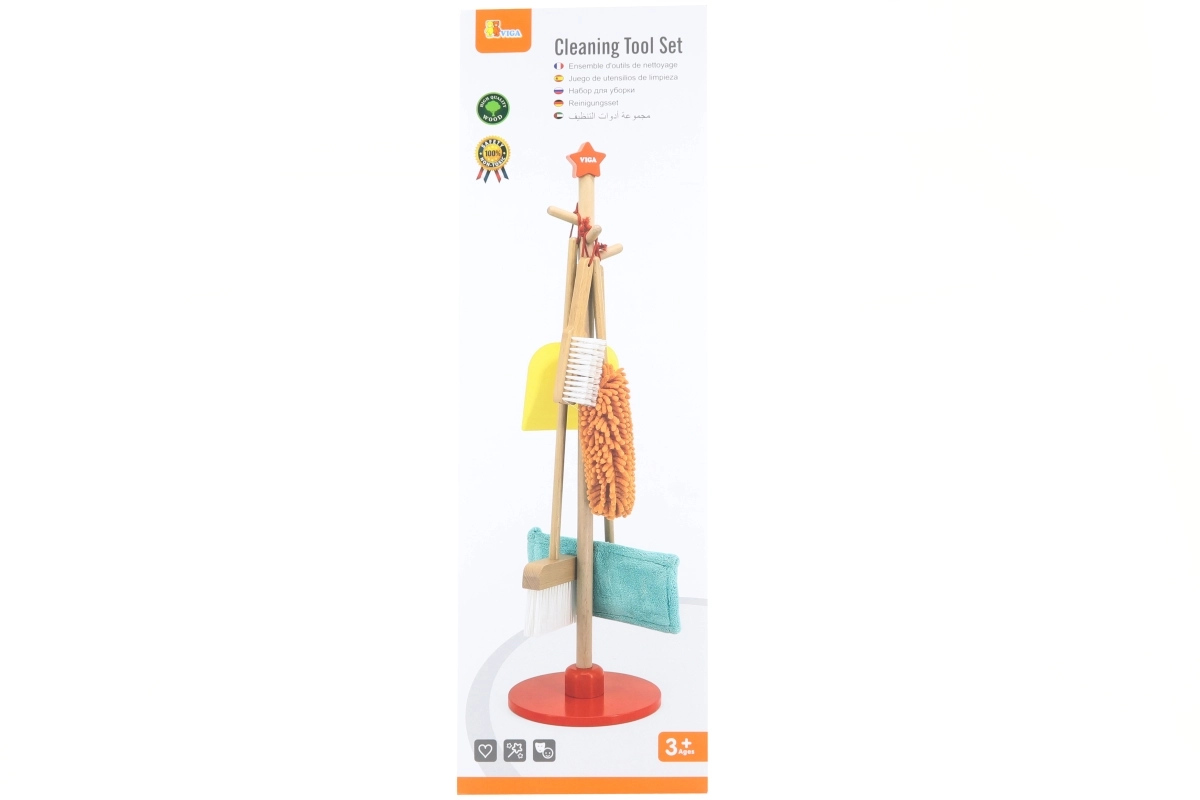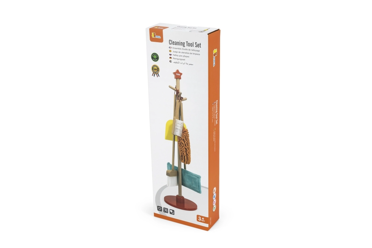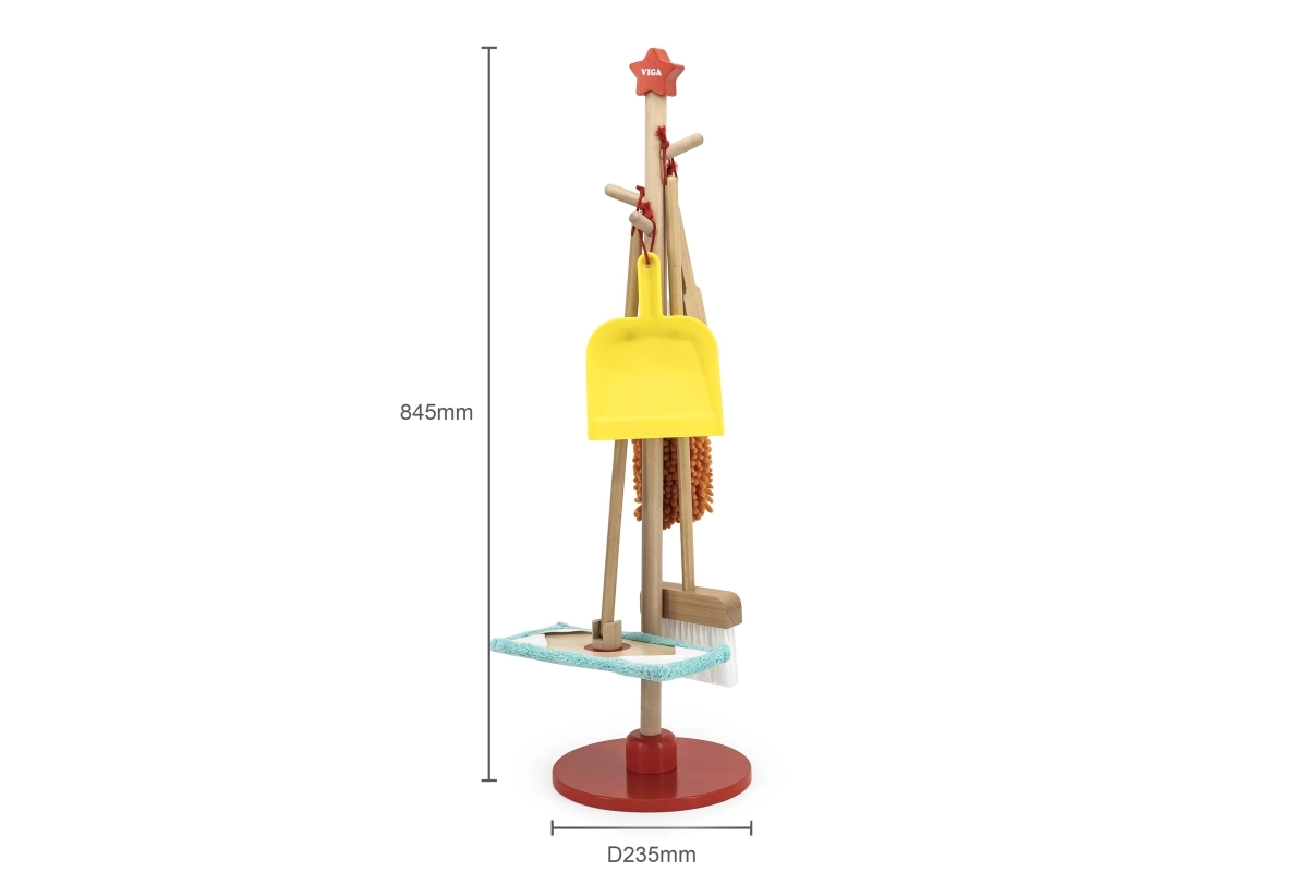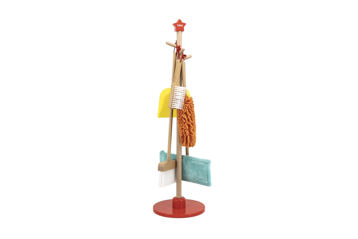 С този комплект за почистване ще убедите децата, че поддържането на чистота може да бъде забавно. Компактната стойка с червен цокъл позволява лесно съхранение на всички инструменти.