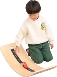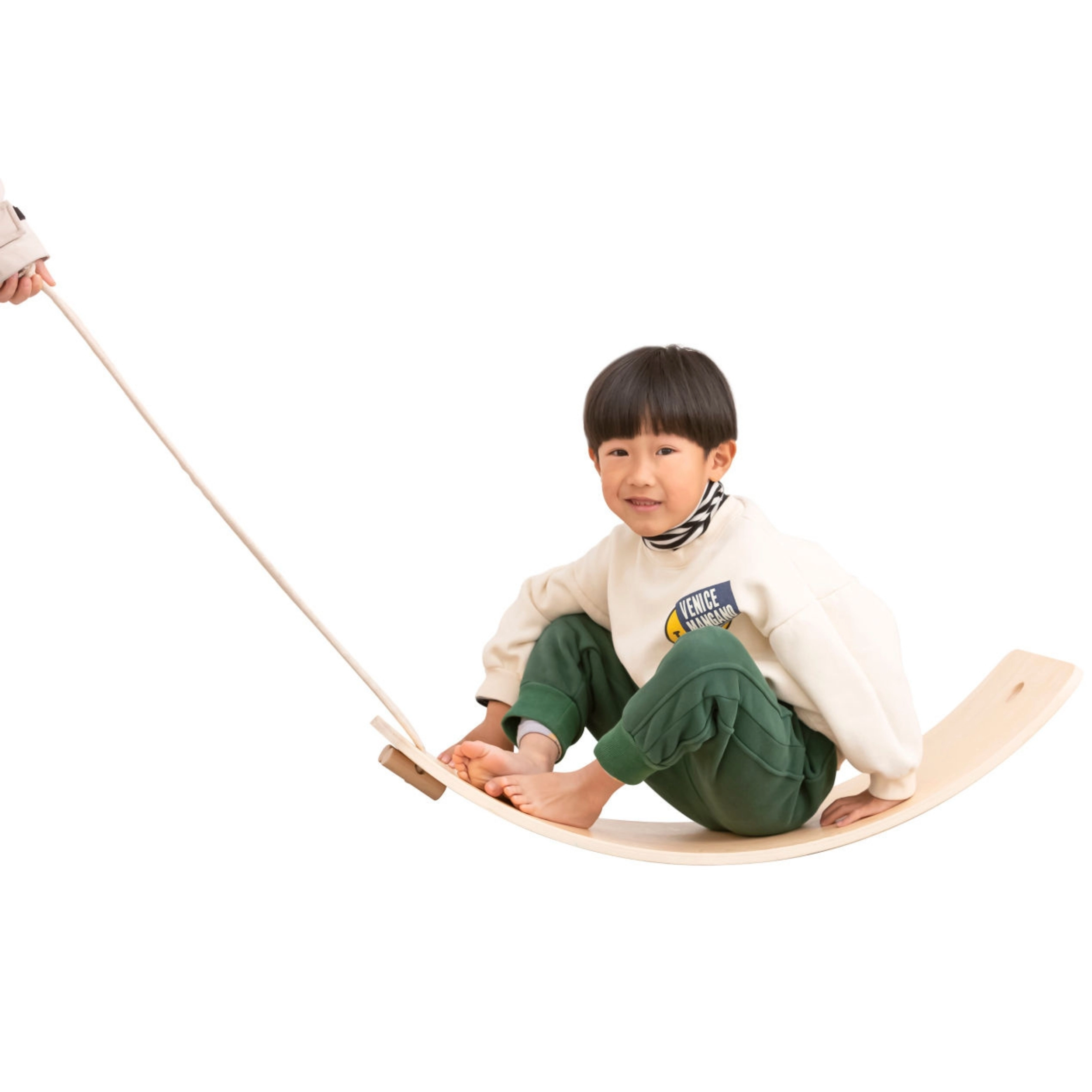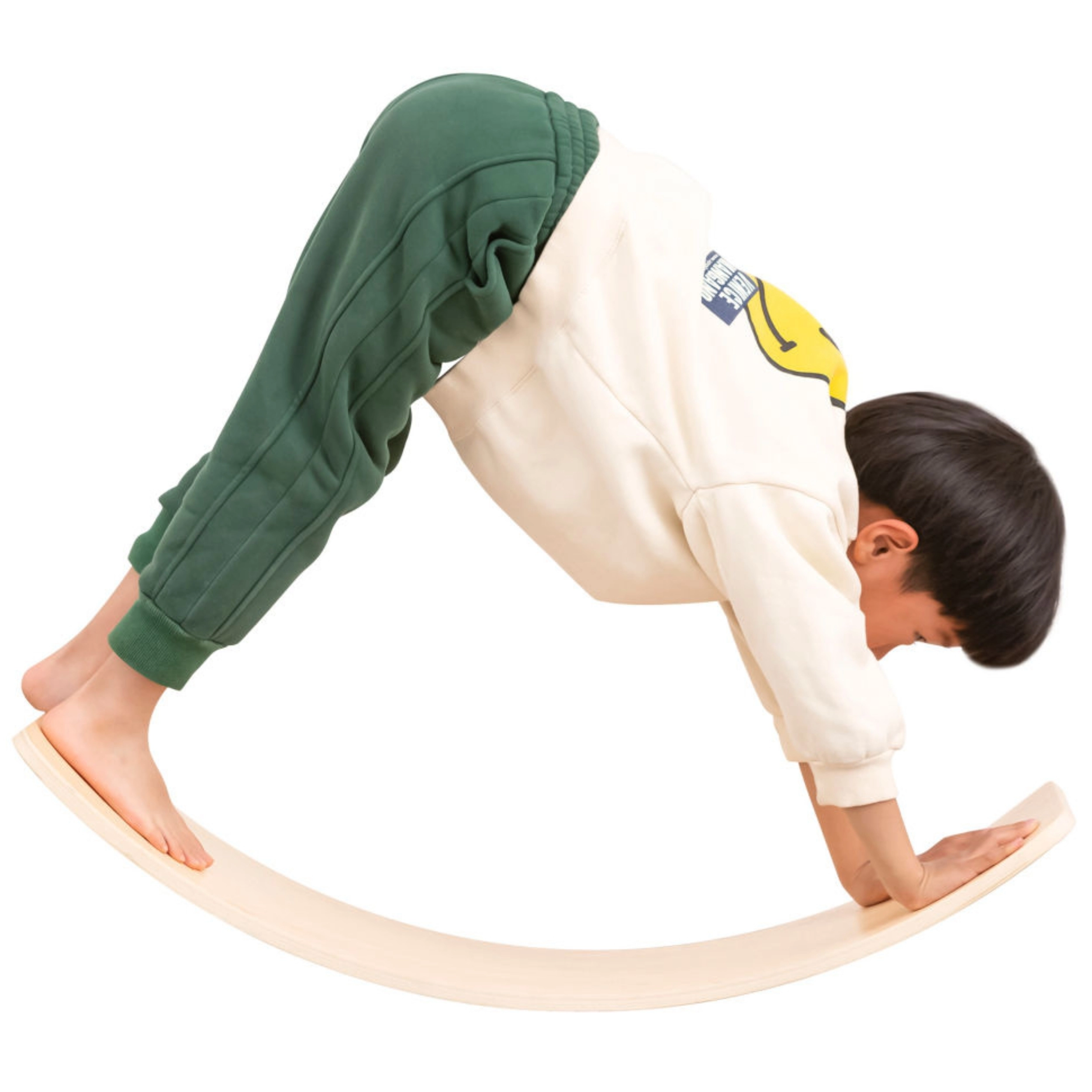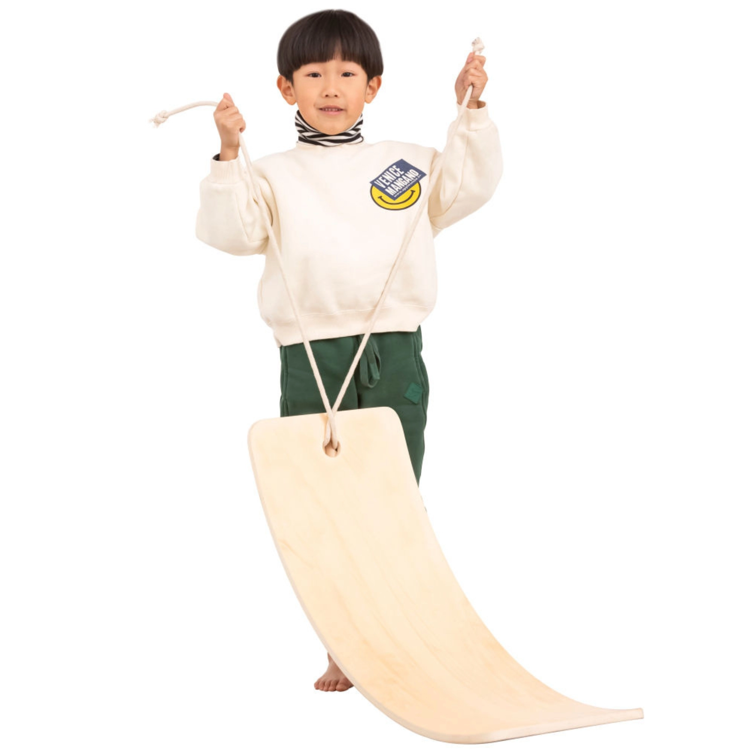 Извитата форма на дъската насърчава децата да се люлеят, да застават прави и да позират, като така развиват координацията, стабилността и центъра на тялото по безопасен и забавен начин.