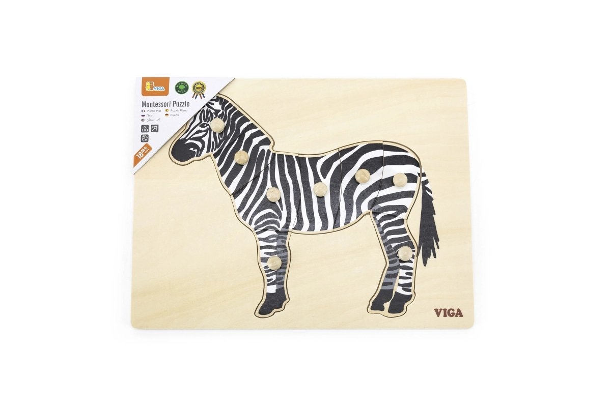 Дървена Монтесори пъзел-дъска VIGA зебра