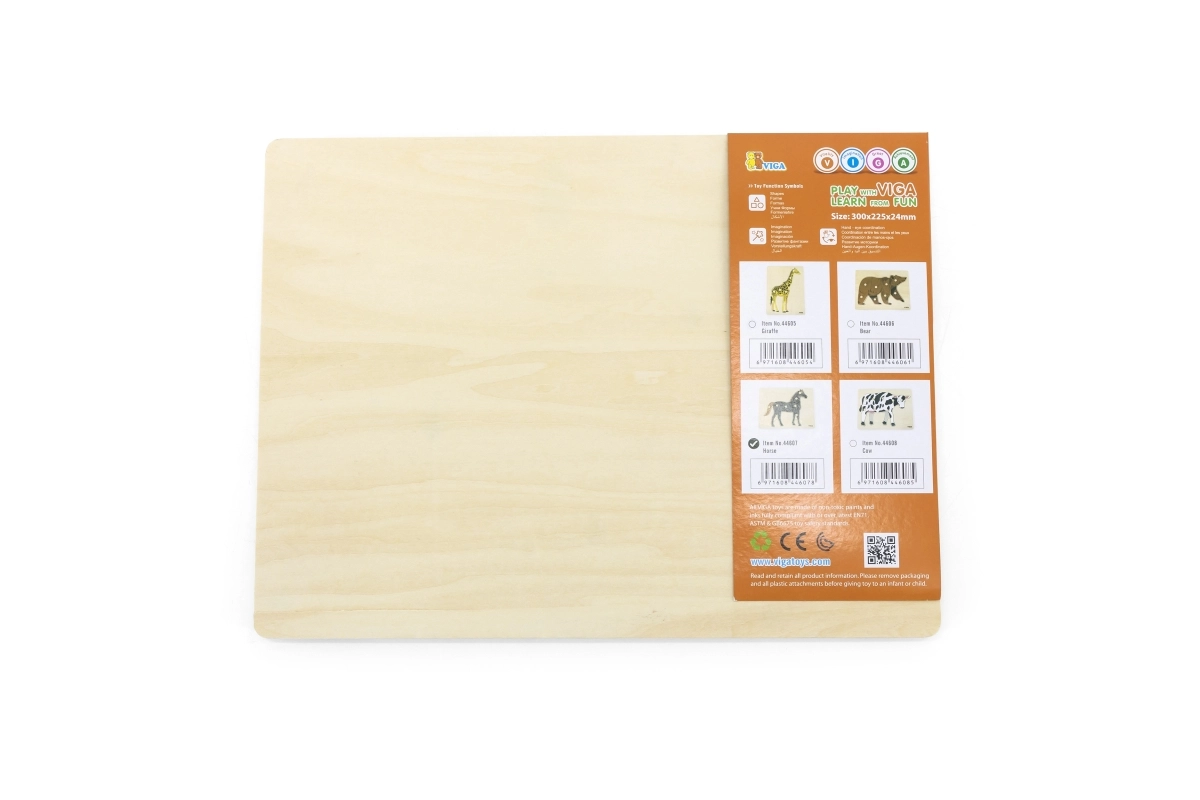 Издръжливата дървена дъска с размер 22,5 × 30 cm е идеална както за детската стая, така и за детските градини. Гладките, внимателно шлифовани ръбове и приятната повърхност осигуряват комфортно боравене дори за най-малките. Доказаното качество на марката VIGA предлага надежден избор за ежедневна игра и учене.