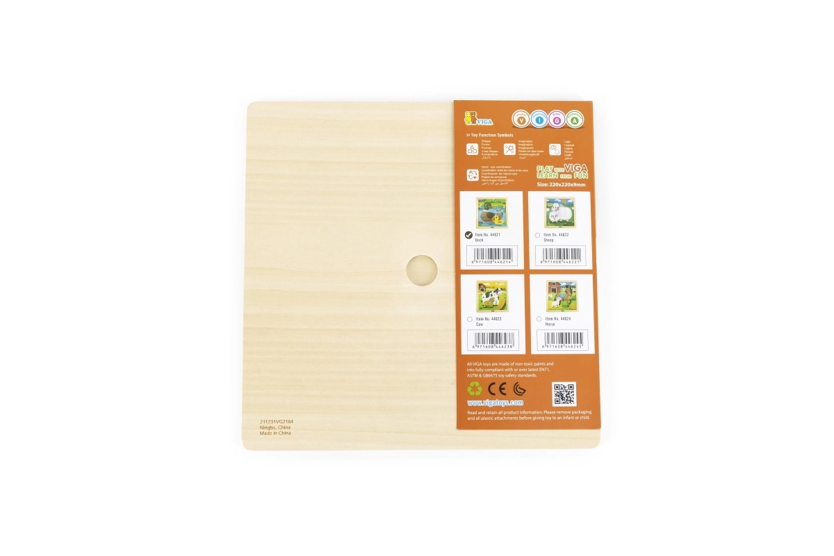 Пъзелът е изработен от качествено дърво, лакиран с безопасни, нетоксични бои и няма остри ръбове. Подходящ е както за домашна игра, така и за детска градина – развива уменията и едновременно забавлява.