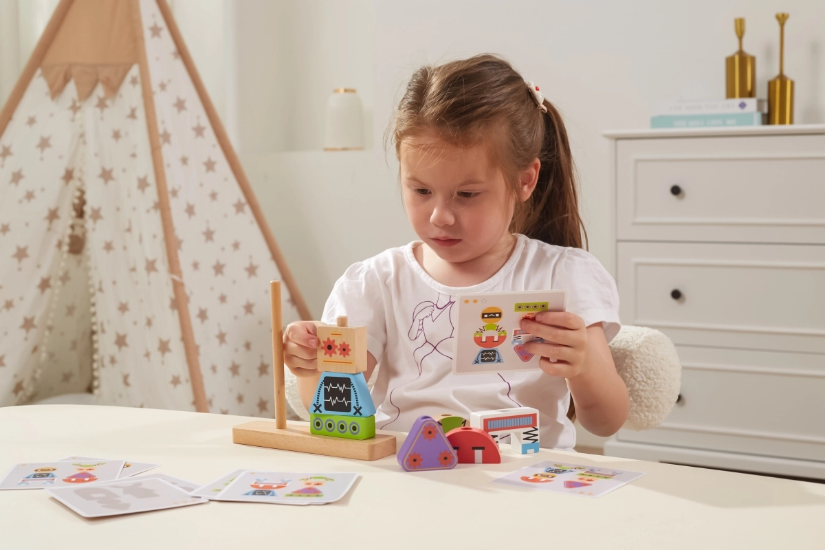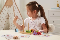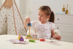 Насаждането на елементите върху колчетата укрепва фината моторика и координацията, свободното строене развива креативността.