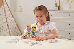 В комплекта има карти с различни модели – децата тренират логика, внимание и прецизност при подреждане стъпка по стъпка.