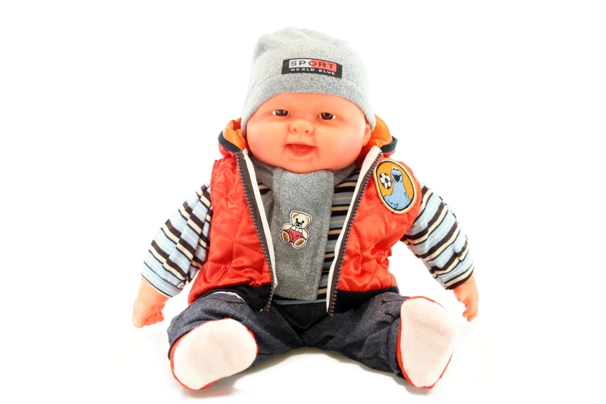 Сладко бебе – момче с меко телце, което ще зарадва всяко дете. В реалистичен размер приблизително 55 × 30 × 13 cm, с облекло с оранжев елек, което се сваля лесно. Идеално за игра на родители и развитие на емпатията. Меко тяло, лесно свалящи се дрешки и размер като на истинско бебе за още по-добро изживяване по време на игра.