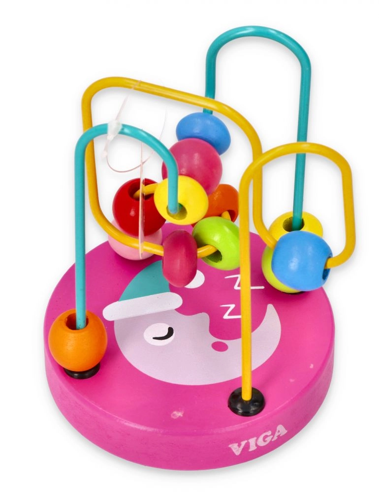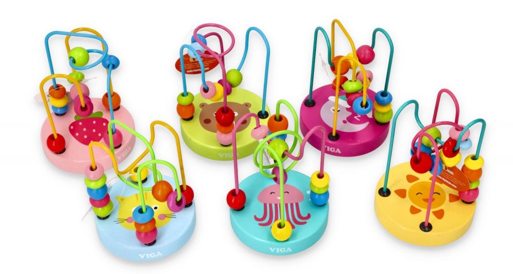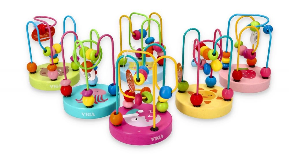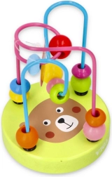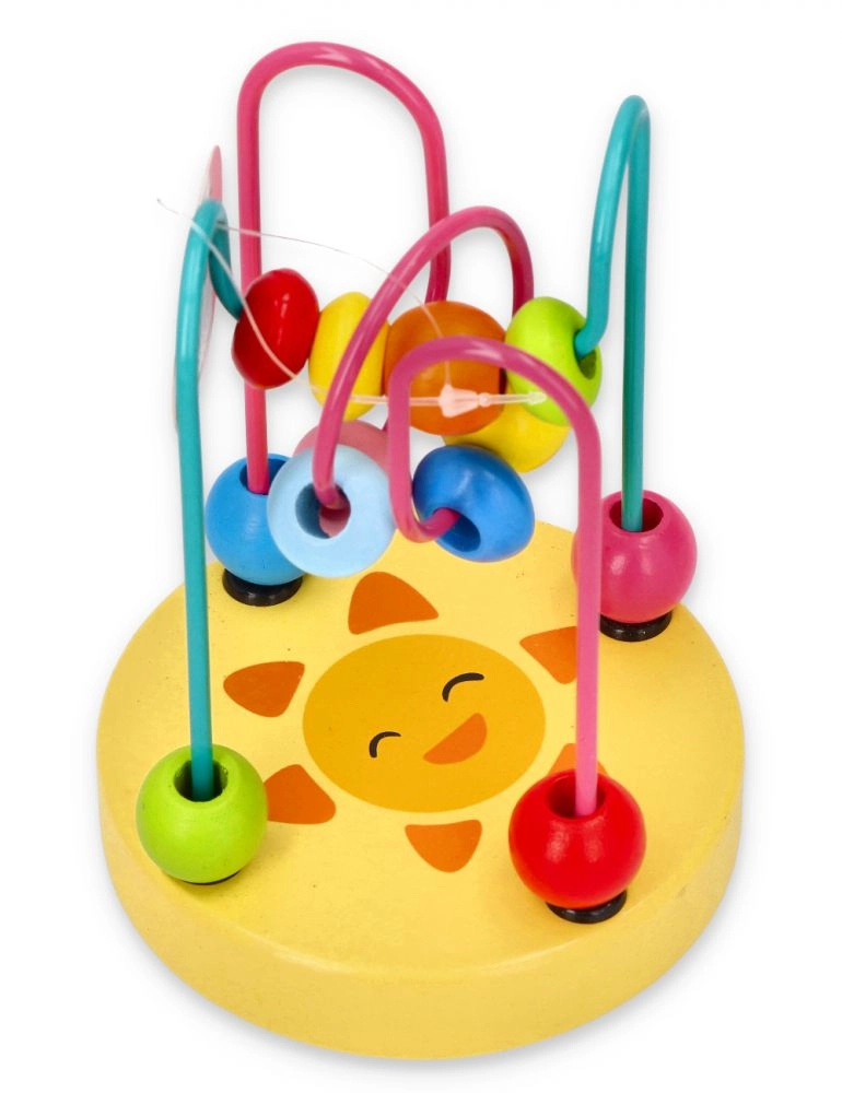 Дървеният мъниест лабиринт, познат и като моторична пътека, е класическа образователна играчка, която развива фината моторика и координацията око–ръка. Децата преместват мънистата с различни форми по извити метални пътеки, като тренират прецизни движения на пръстите и логическо мислене. Цветните мотиви върху стабилната дървена основа насърчават играта и задържат вниманието.