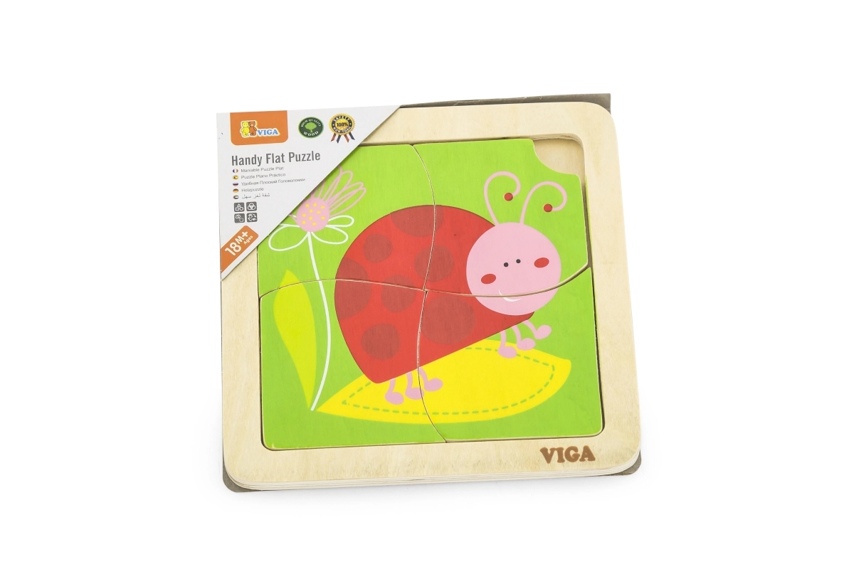 Четирите големи части се държат удобно и лесно пасват в рамката. Идеален избор за деца от 18 месеца, които се учат да подреждат първия си пъзел.
