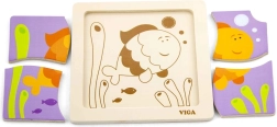 Подарете радост от откриването и развиването на моторните умения на децата си с този цветен и качествено изработен дървен пъзел. Частите са проектирани така, че да се хващат лесно и да могат да се поставят върху дървена дъска с рамка и примерен модел. Ако желаете да затрудните подреждането, можете да подреждате и без рамката.