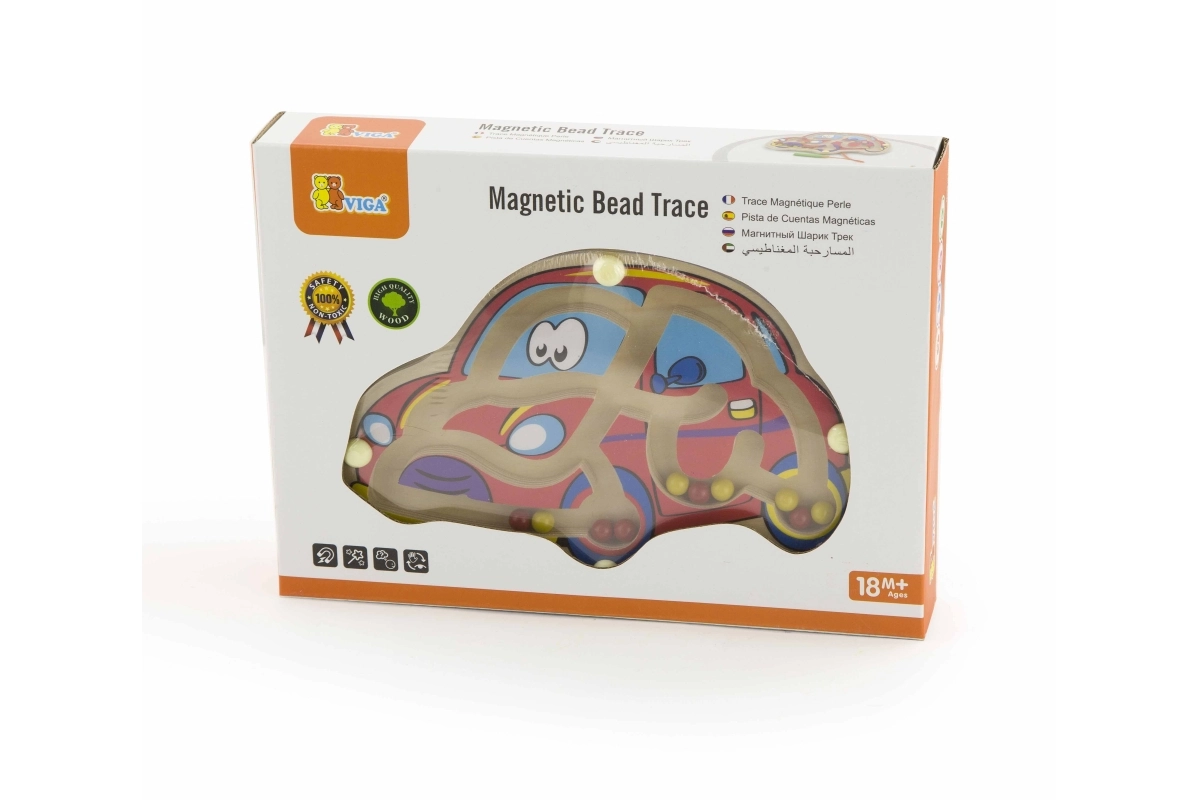 Магнитният лабиринт във форма на количка е създаден да подпомага развитието на фината моторика и когнитивните способности на вашите деца. Тази цветна дървена игра превръща ученето в забавление и игра. Благодарение на лесната употреба и премисления дизайн осигурява часове качествено забавление.